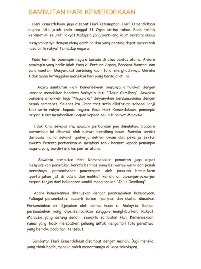 Pengalaman Menyaksikan Sambutan Hari Kebangsaan Pdf